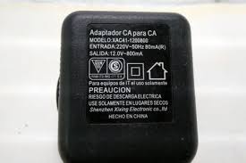 Descripción Breve: Se trata de un transformador o adaptador de pared que suministra Corriente Alterna (AC) con un voltaje nominal de 12.0 voltios y una capacidad máxima de corriente de 800 miliamperios (0.8 Amperios).