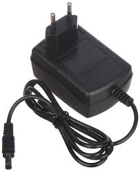 Adaptador de corriente que transforma el voltaje de la red eléctrica a una salida de 12.0 Voltios (V) y 1 Amperio (A), siendo crucialmente de Corriente Alterna (AC) en lugar de Continua (DC).