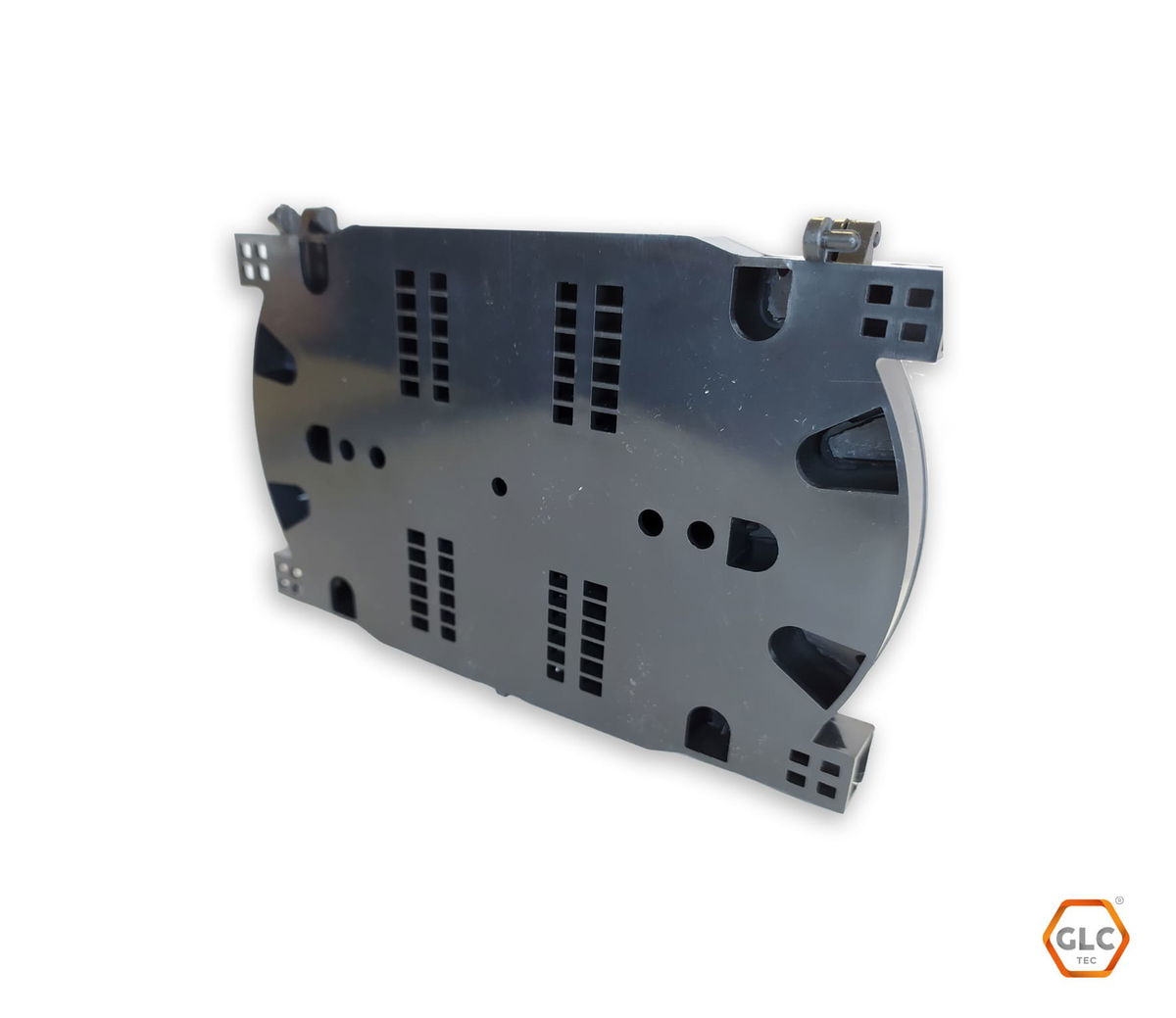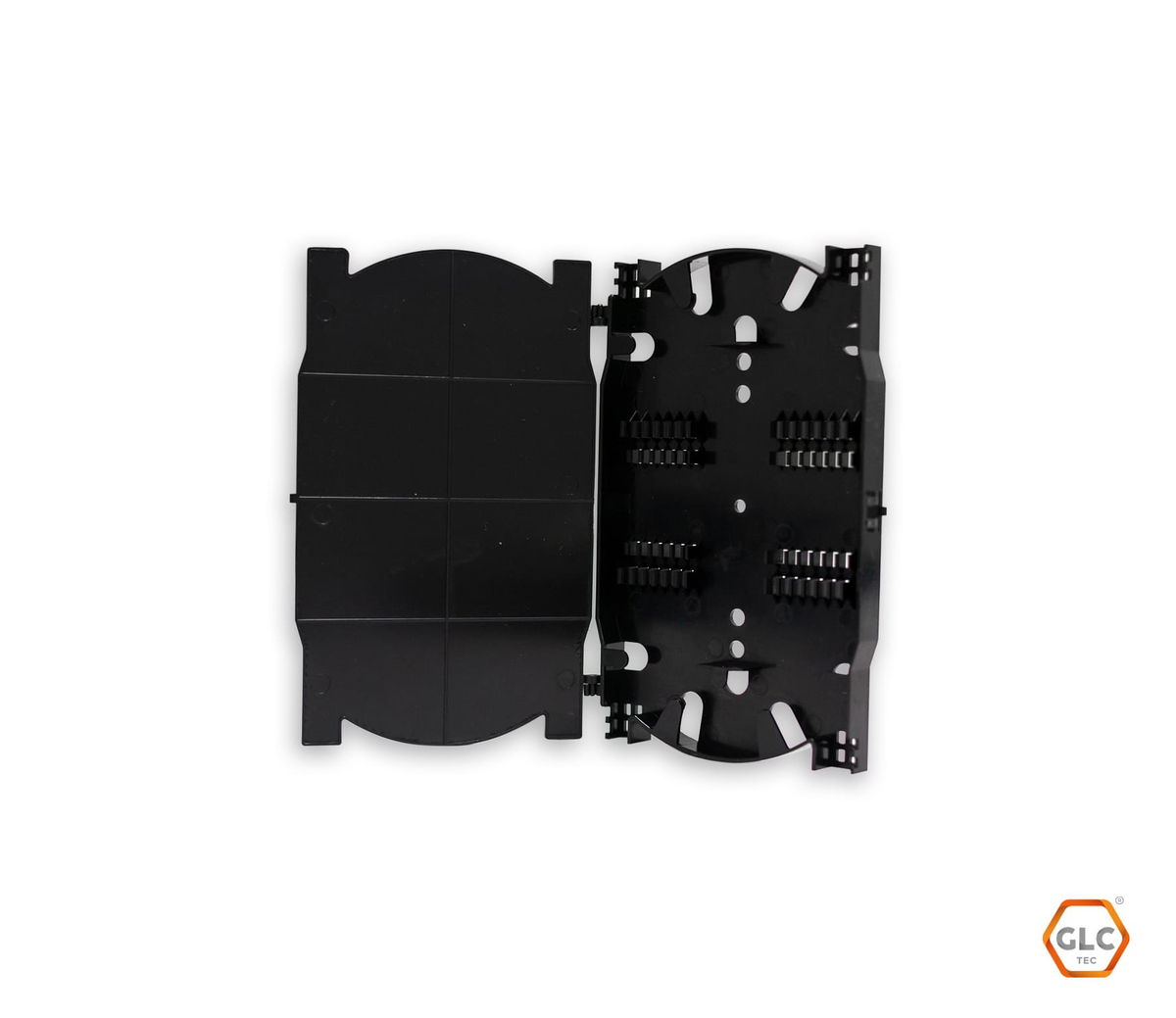 Casseté de empalme para 24 puertos de fibra óptica, diseñado para organizar y proteger empalmes por fusión en cajas de distribución.