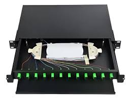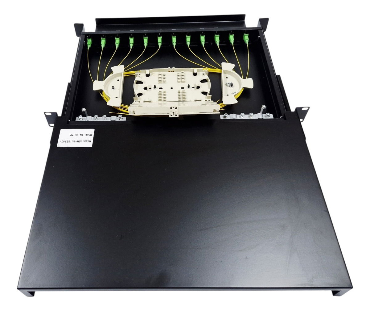 Bandeja ODF (Optical Distribution Frame): Un panel que se instala en un rack de 19 pulgadas para la gestión, terminación y distribución de los cables de fibra óptica. Sirve como un punto de transición entre el cable principal de la red y los patch cords que se conectan a los equipos activos.