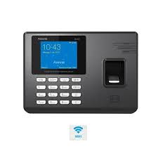 Control de acceso y asistencia de la marca ANVIZ, modelo GC150. Utiliza huella dactilar y tarjetas RFID para la identificación, registrando la entrada y salida de personal.