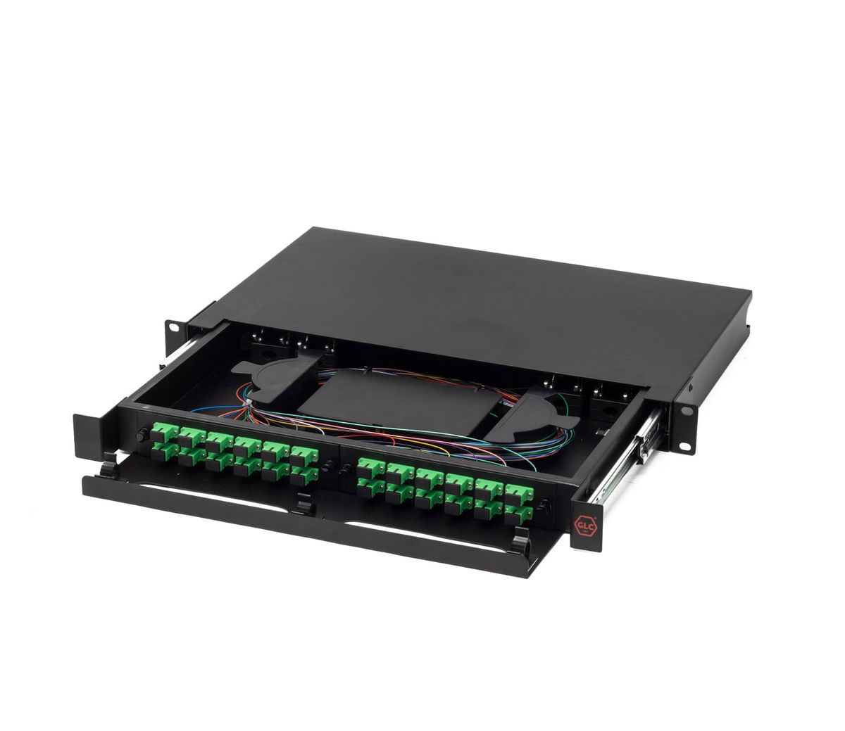 Adaptadores SC/APC: El panel frontal viene pre-instalado con adaptadores de conector SC/APC. El pulido en ángulo (APC) reduce la pérdida de retorno, lo que es crucial para la integridad de la señal. Los adaptadores y conectores APC suelen ser de color verde.