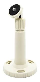 Soporte de pared o techo para cámara de seguridad de uso interior. Fabricado en plástico resistente, es ligero y fácil de instalar, ideal para cámaras tipo domo o bullet.