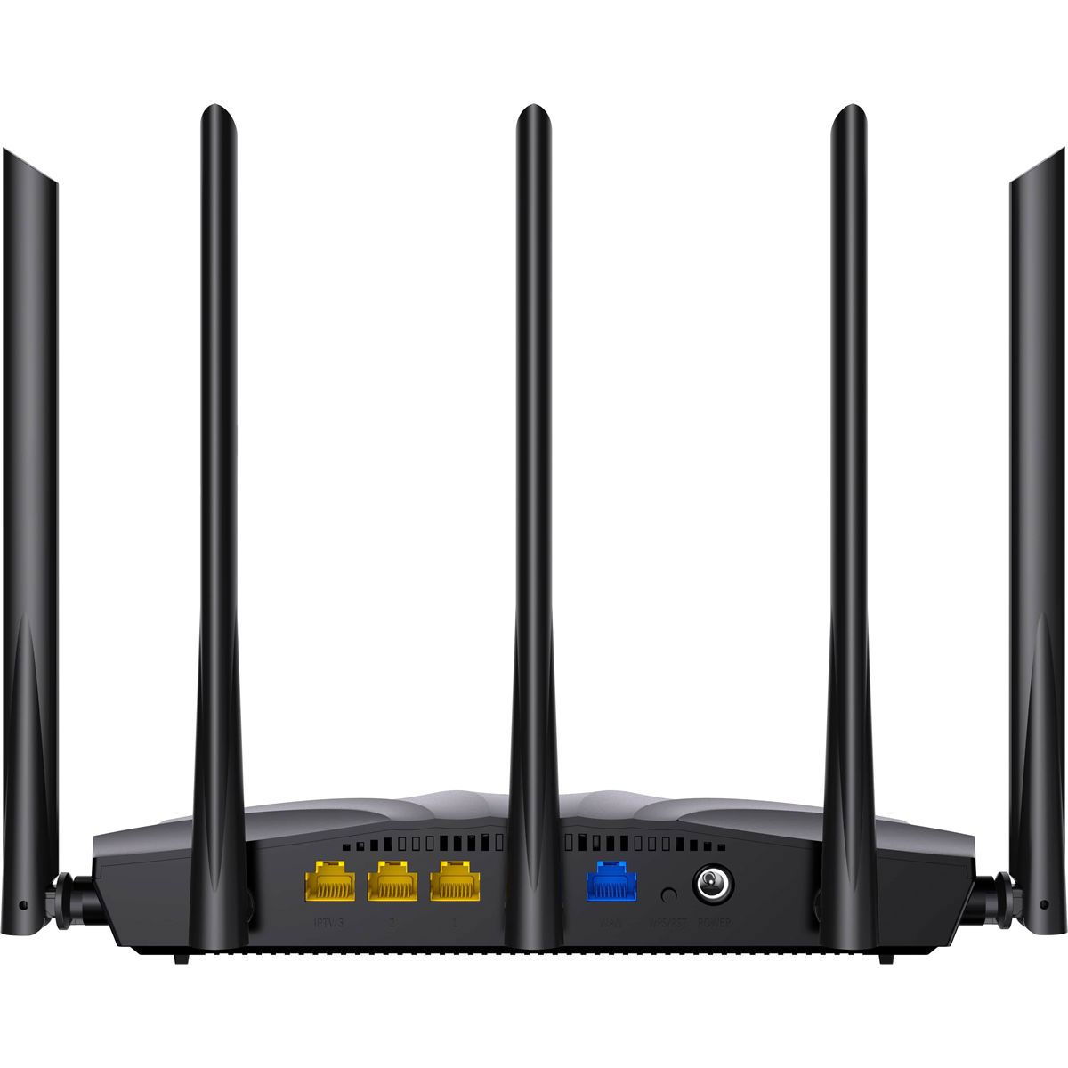 Router inalámbrico de doble banda con tecnología Wi-Fi 6 para una red más rápida y eficiente. Incluye puertos Gigabit y cinco antenas para ampliar la cobertura en hogares y oficinas.