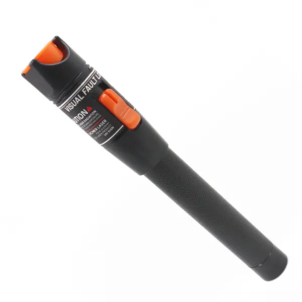 Linterna Visual de Fallos (VFL): Un localizador visual de fallos, es una herramienta esencial que emite un potente rayo de luz visible a través de un cable de fibra óptica. Si el cable está dañado (por ejemplo, tiene un corte o una micro curva), la luz se escapa en el punto de la falla, haciéndola visible.